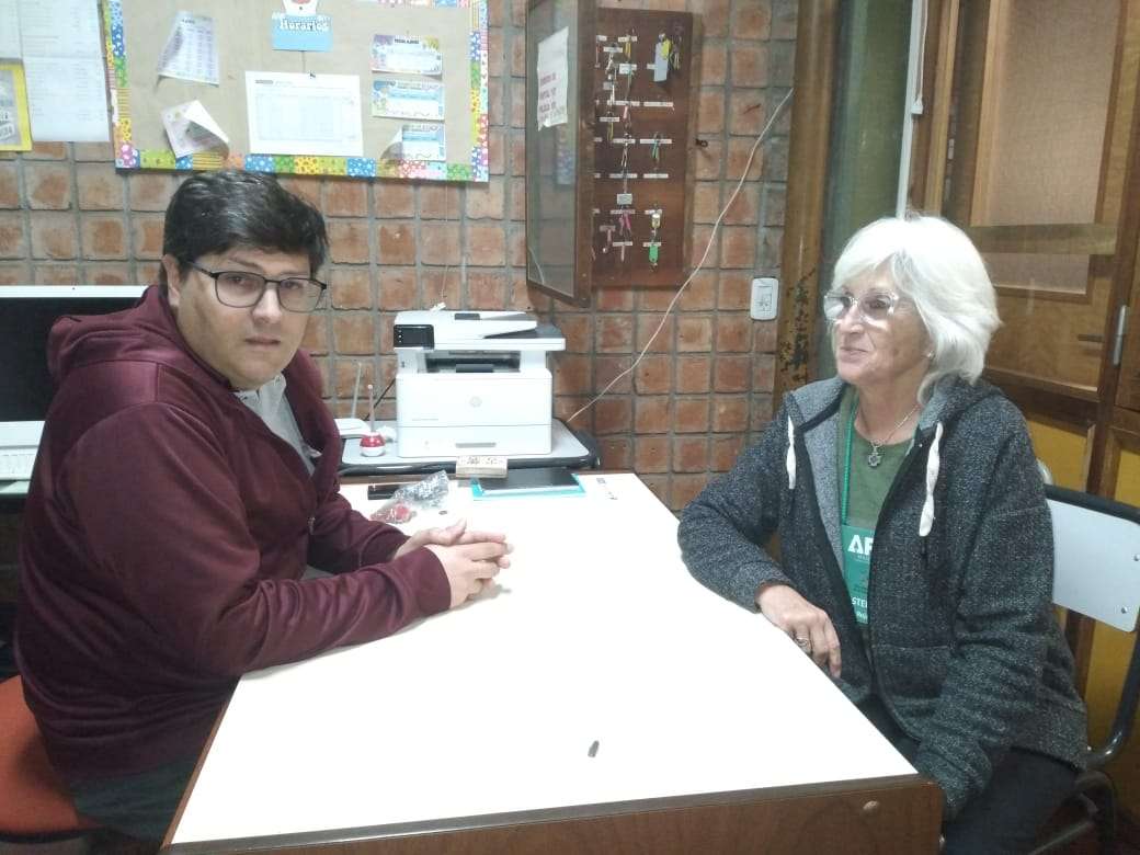 Estela Bianco, del grupo de Mujeres de AFA, y Alejandro Rodríguez, Director de la Escuela Técnica brindaron detalles de la propuesta, cuya primera capacitación a los estudiantes se concretó precisamente en el SUM de la institución ubicada sobre la Avenida Larrea.