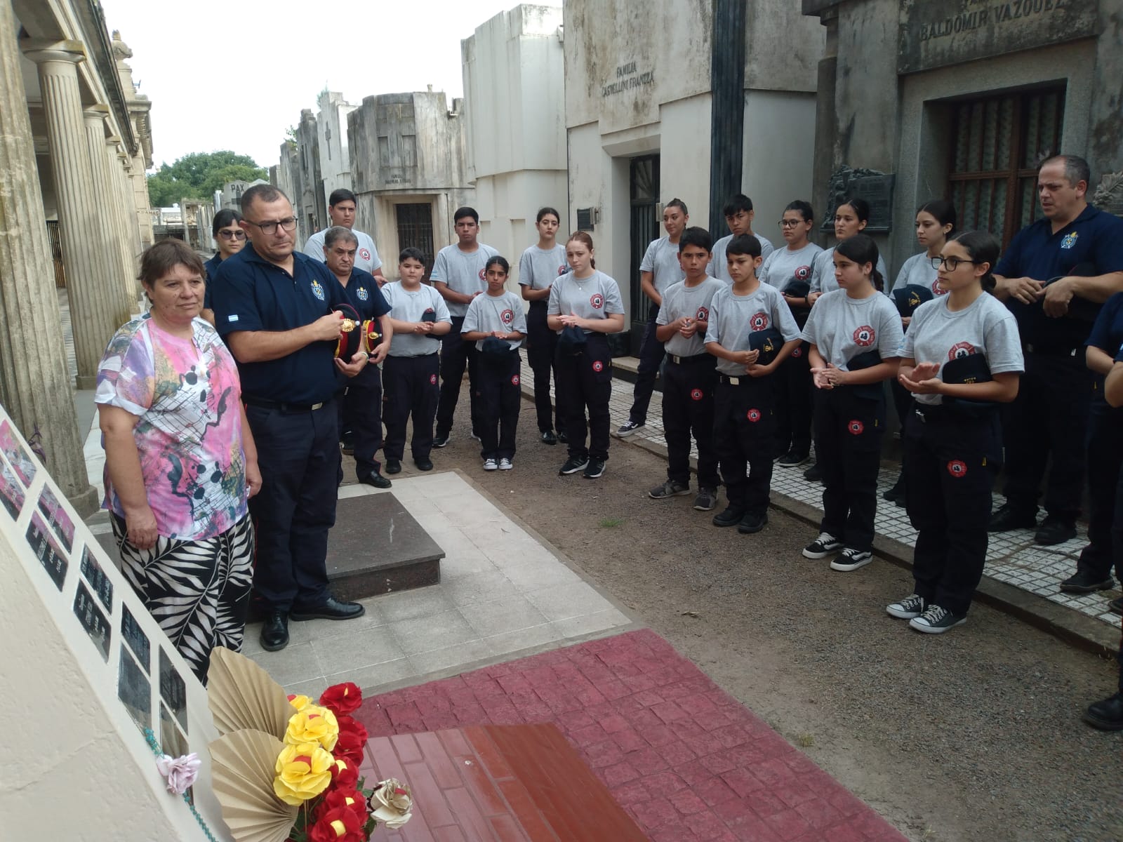 La Comisión Directiva, Cuerpo Activo con sus autoridades, los integrantes de la Escuela de Cadetes y los aspirantes se reunieron en las puertas del cuartel de Avenida Tormey para completar la formación y el toque de sirenas.