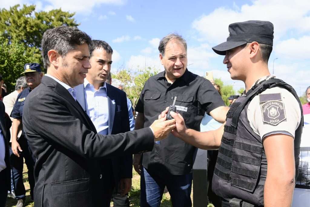 El gobernador de la provincia de Buenos Aires, Axel Kicillof, entregó once nuevos móviles policiales para fortalecer la prevención del delito en el municipio de San Isidro, gobernador por intendente Pro-libertario, Ramón Lanús.