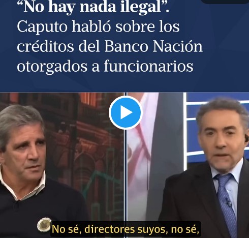 El ministro de Economía, Luis Caputo, defendió en LN+ que funcionarios del Gobierno y legisladores de La Libertad Avanza hayan accedido a créditos hipotecarios del Banco de la Nación Argentina, en medio del pedido de investigación que impulsó la oposición. pic.twitter.com/s1RXYbTMkE