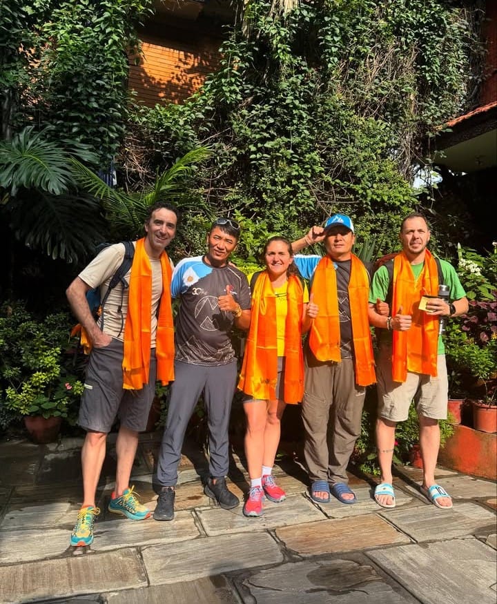 La montañista indicó que “salimos el 5 de septiembre y llegamos el 7 a Katmandú, donde estuvimos hasta el 9, que fue cuando nos reunimos con el sherpa que habíamos contratado, que tiene una empresa que se llama Adventure 14 Sammit, allí nos probamos los monos de pluma, nos explicó como sería la logística, y ese día salimos para el campo base“.