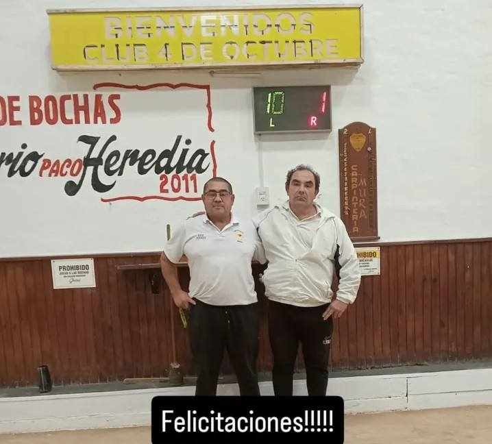 Los dos equipos del club Cuatro de Octubre que lograron avanzar a las instancias finales de la competencia estuvieron conformados por Luis Torres y Germán Federicci, quien durante sábado y domingo mostraron un nivel de excelencia.