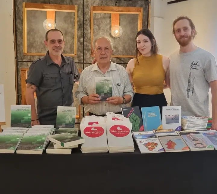 El segundo tomo de “Aportes para la historia” de Rojas forma parte del catálogo de la editorial local Nido de Vacas, que justamente estuvo representada en el evento a través de sus propietarios, Federico Riveiro, Lula Padilla y Ezequiel Evangelista.