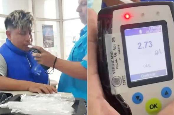 Al practicarle el control, el resultado fue impactante: la pipeta marcó 2,73 gramos de alcohol por litro de sangre, una cifra extremadamente elevada que representa un serio riesgo para la seguridad vial y una infracción extrema, ya que lo permitido es cero alcohol en sangre para conducir. Asimismo, el hombre no contaba con licencia de conducir, por lo las autoridades actuaron de inmediato con el sujeto fuera de regla.