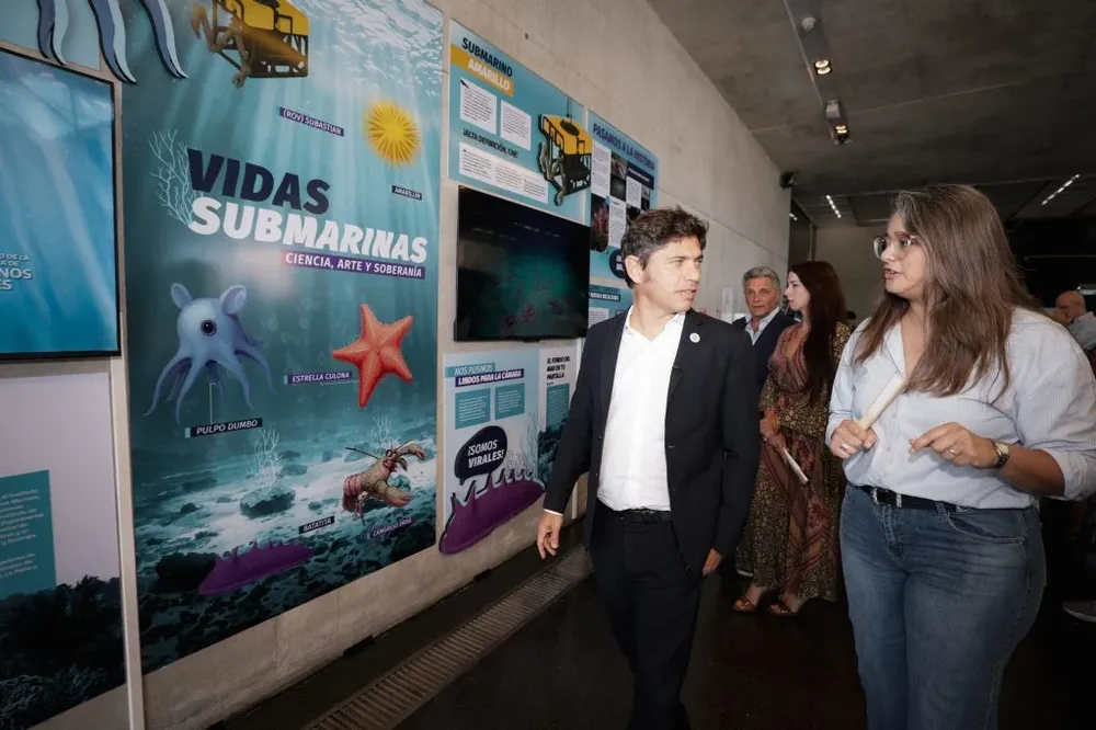 El gobernador de la provincia de Buenos Aires, Axel Kicillof, recorrió este lunes la muestra “Vidas Submarinas: ciencia, arte y soberanía”, que se exhibe en el Museo de Arte Contemporáneo de Buenos Aires (MAR), en Mar del Plata. La exposición pone en valor los resultados de la expedición Oasis Submarinos del Cañón Mar del Plata: Talud Continental IV, una campaña científica histórica realizada por especialistas del CONICET y seguida en tiempo real por miles de personas durante julio y agosto de 2025.