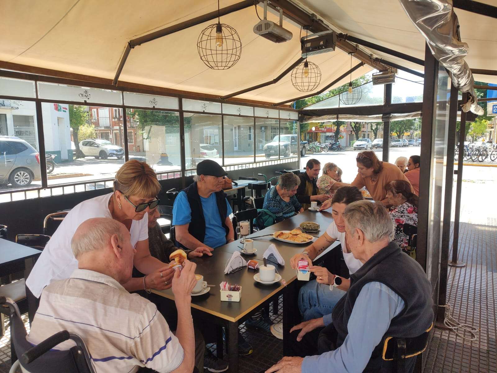 Los abuelos y abuelas salieron a disfrutar de un desayuno, compartiendo anécdotas y tiempo de calidad juntos, siendo acompañados por el personal del hogar.