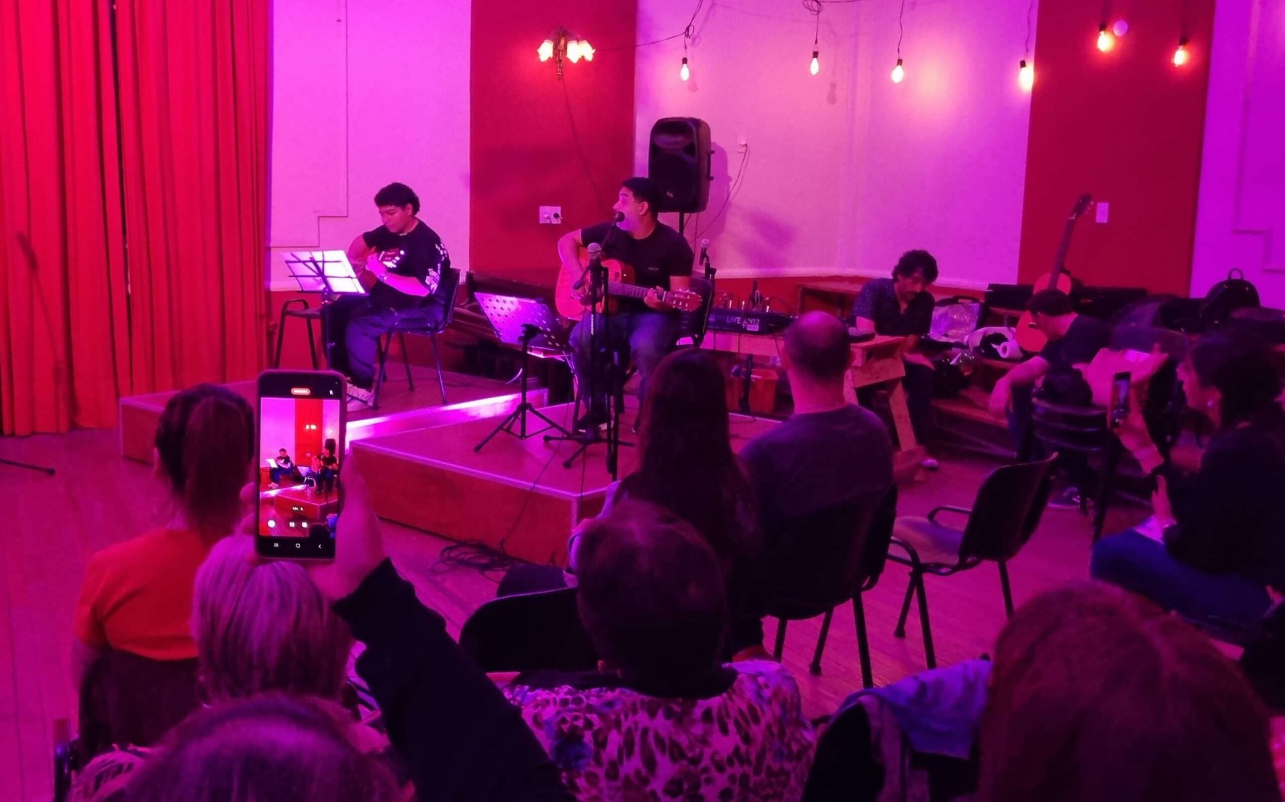 La muestra de los talleres de guitarra, canto, batería y folklore se hizo en la sala principal del Centro Cultural, donde los alumnos de cada área exhibieron todos los conocimientos adquiridos a lo largo de este 2025, contando con un muy buen acompañamiento por parte del público.